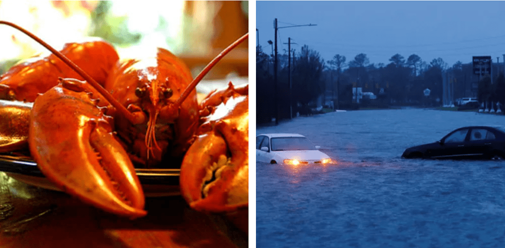Lobsters will migrate north with warming temperatures, and are victims of ocean acidification, which weakens their shells. More coastal flooding is predicted as sea levels and extreme weather increases.