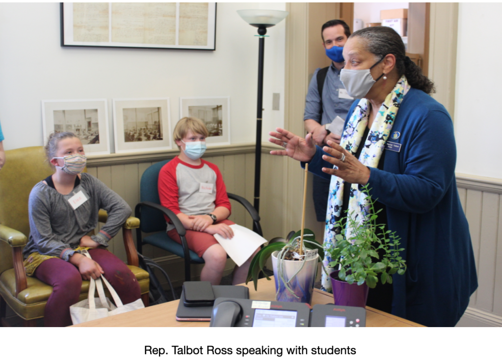 Assistant House Majority Leader Rachel Talbot Ross viewed the students’ artwork and poetry on display in the Secretary of State’s main office.