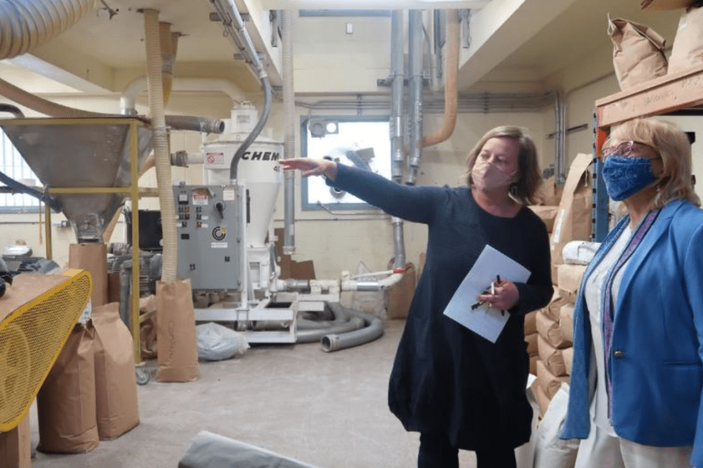Governor Mills tours Maine Grains in Skowhegan, led by owner Amber Lambke
