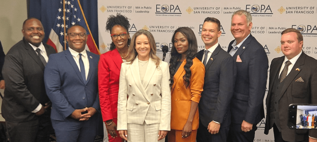 From the EOPA DC Press Club IRA anniversary press conference from left to right: Fred Quinn III, PA Swissvale Councilmember, Alexander Walker-Griffin, CA Hercules Councilmember, National Guard, Dr. Donya Sartor, GA Jonesboro Mayor, Heidi Roddenberry, Roddenberry FoundationBoard Chair, Yetide Badaki, CA based actress/writer/producer, Star Trek, American Gods, Alex Cornell du Houx, former Maine State Representative, Marine combat veteran, EOPA President, Marshall Archer, ME Saco Deputy Mayor, Veteran and special guest Jordan Meade, UK Kent Graves-End Council Member,Advisor to Parliament.