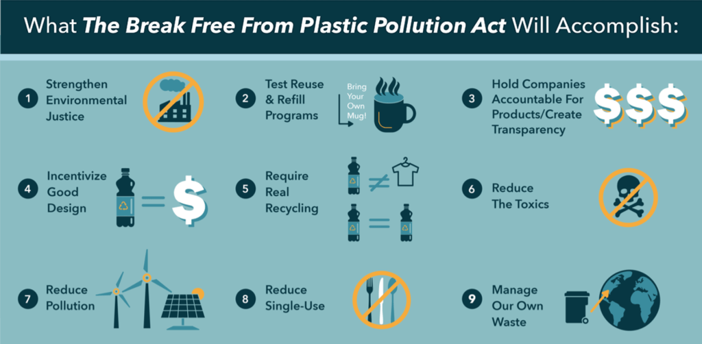 The Break Free From Plastic Pollution Act is endorsed by over 400 groups.