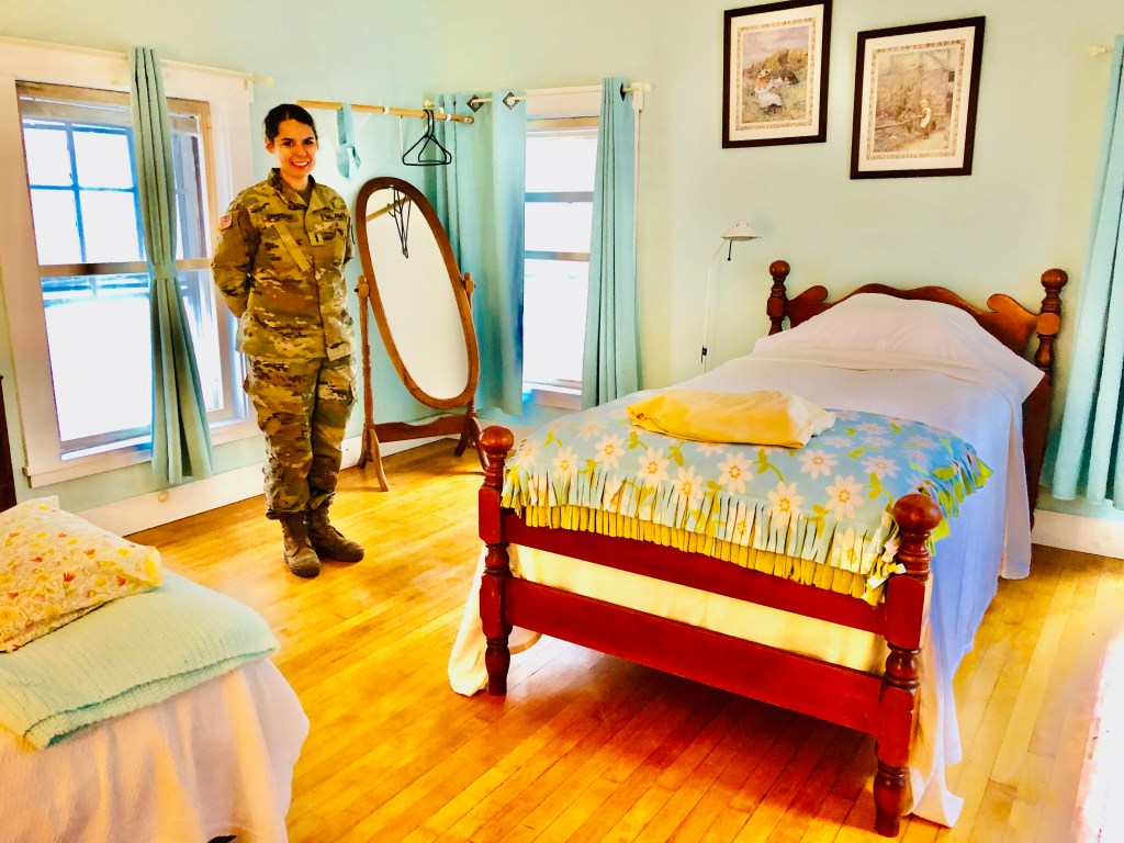 Rebecca Cornell du Houx, Sisters in Arms Center – Executive Director, Licensed Clinical Social Worker (LCSW), Commissioned Officer MEARNG shows a bedroom for women veterans at the Sister in Arms Center in Augusta, Maine. Photo: Ramona du Houx