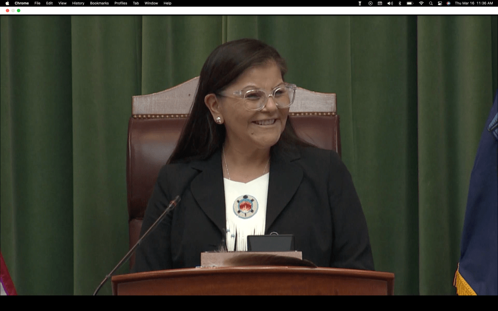 “Today was more than a joint convention, it was a powerful and historical moment when Wabanaki leadership presented Maine lawmakers with a compelling look both at our past and our future. I am grateful that Chief Sabattis, Chief Newell, Chief Francis, Chief Peter Paul and Chief Nicholas shared their time, their words and their history of resilience. By no means does the State of the Tribes Address forgive a shameful history of pain and tragedy, discrimination and injustice. However, it can signify an enduring commitment to perform the critical work of reflection, understanding, and collaboration in order to continue to heal past wrongs and work towards a more just and equitable future,” said Speaker of the House Rachel Talbot Ross.